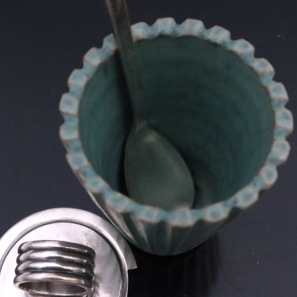 Sterling Silver Lid and Spoon designed by Svend Weihrauch (1899-1962) and crafted by F. Hingelberg in Aarhus, Denmark.