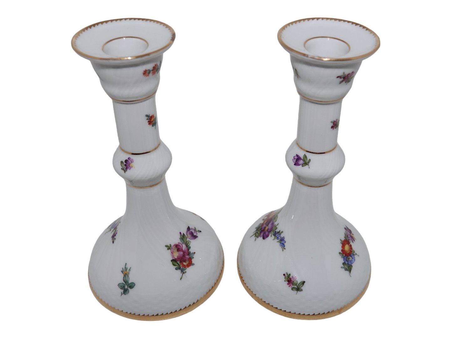 Royal Copenhagen Full Sachian Flower, pair of tall candle light holders.