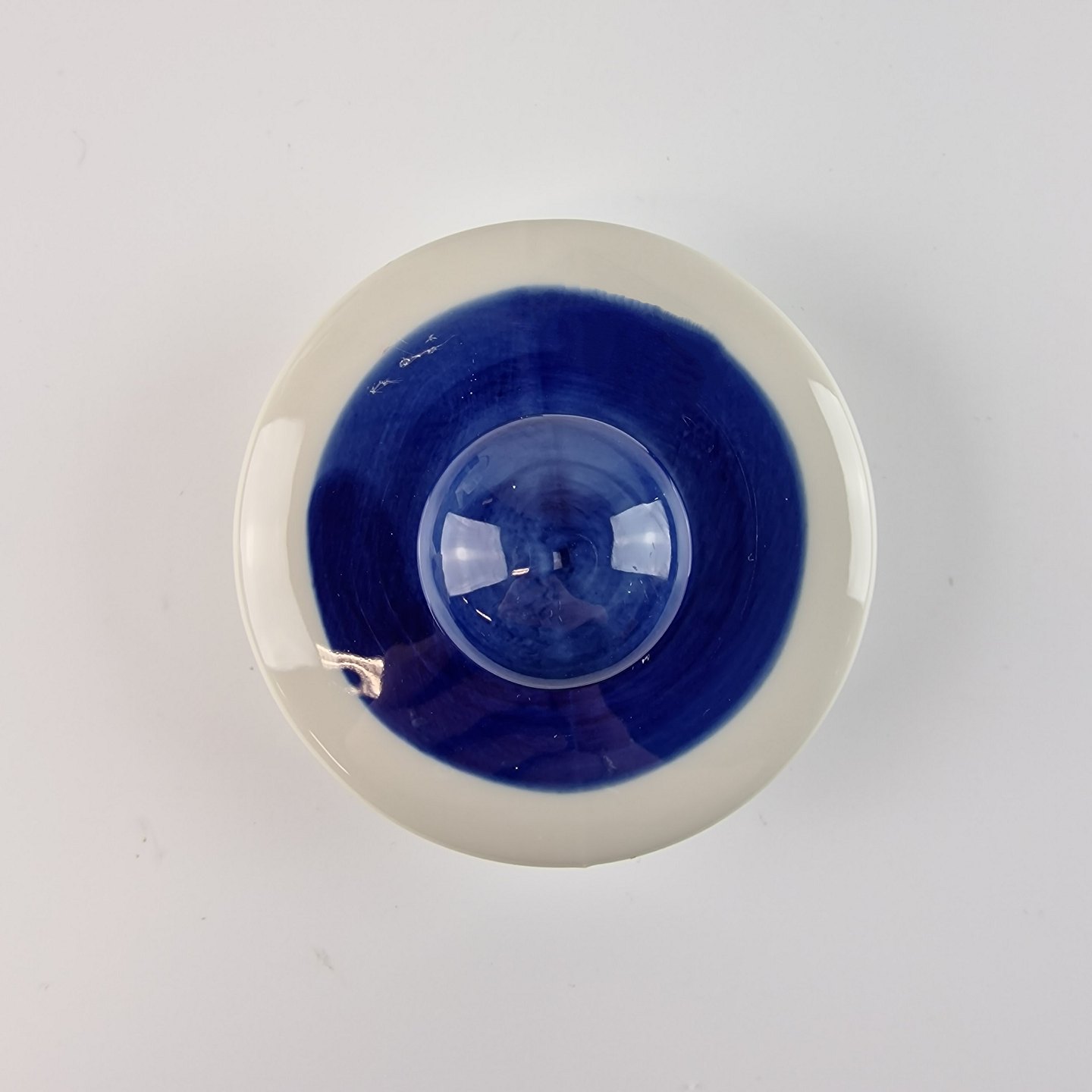 Blå Koka er af hvidt glaseret porcelæn med et bånd af mørk blå
