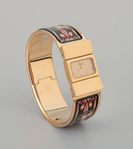 Hermes, ladies' wristwatch. Made of gilded metal and enamel work.