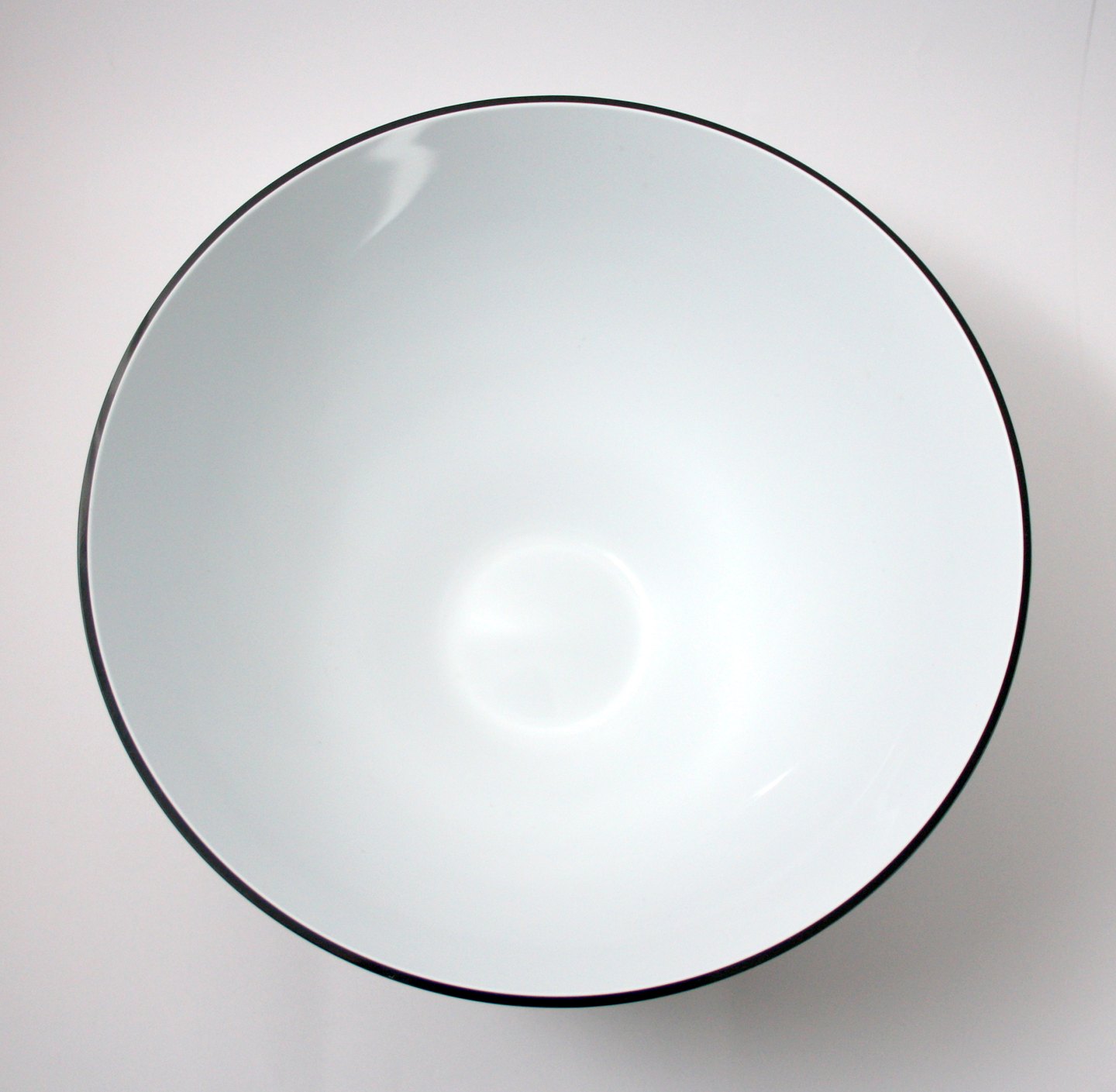 Text available in Danish: Holmegaard, Cocoon stor skål i udvendig sort farvet glas og hvid indvendig. Designet af Peter Svarrer i 2005. Peter Svarrer starter på Holmegaard i 1997 og er kaldt for lysets mester, manden der bragte Holmegaard ind i det nye millennium efter Michael Bang og Per Lütken.