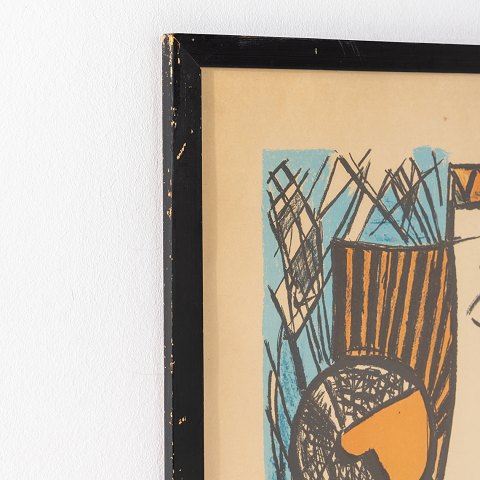 Litografi. Orange ansigt med sort ramme. 319/325. Signeret. Note på bagsiden.