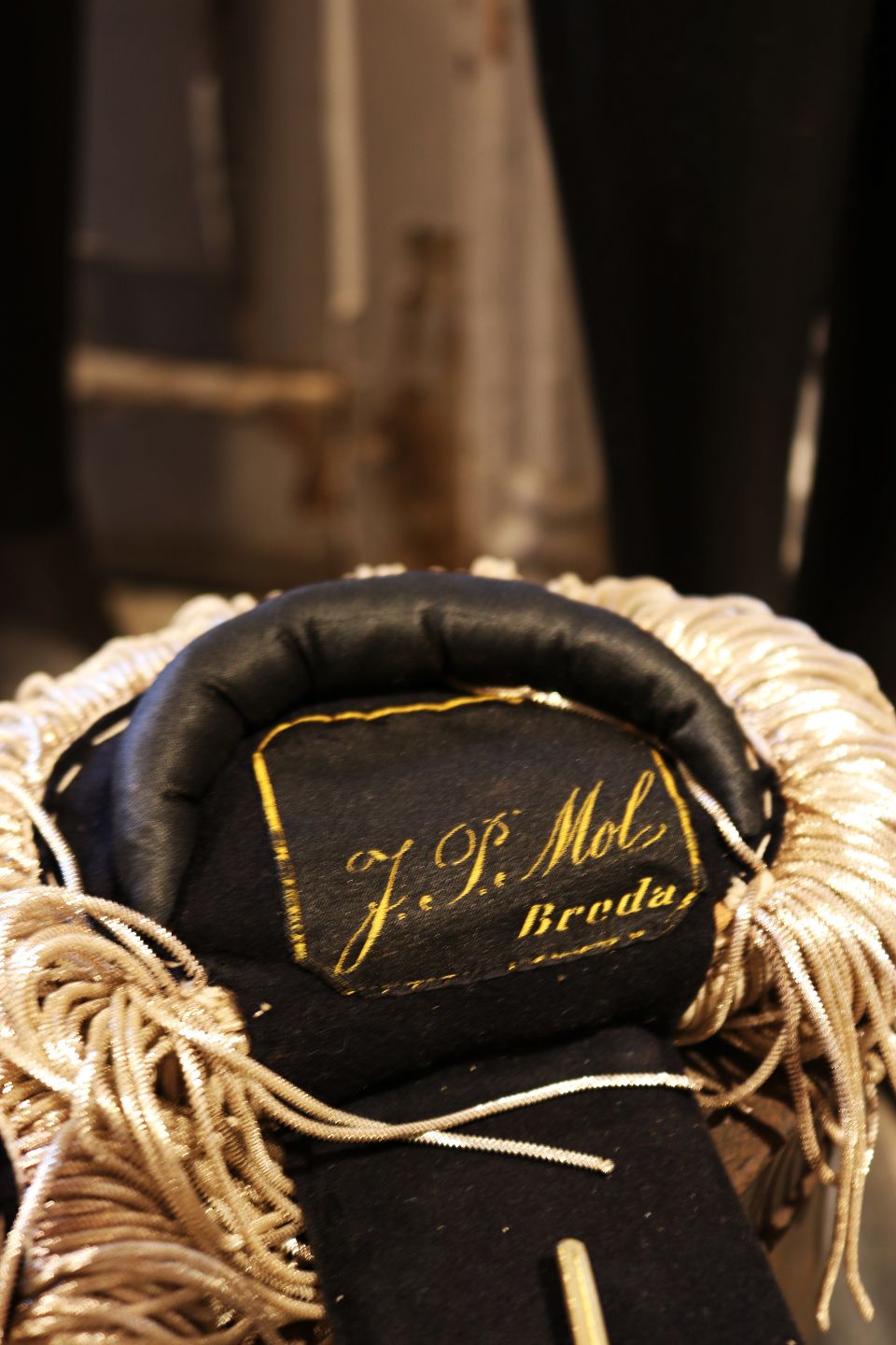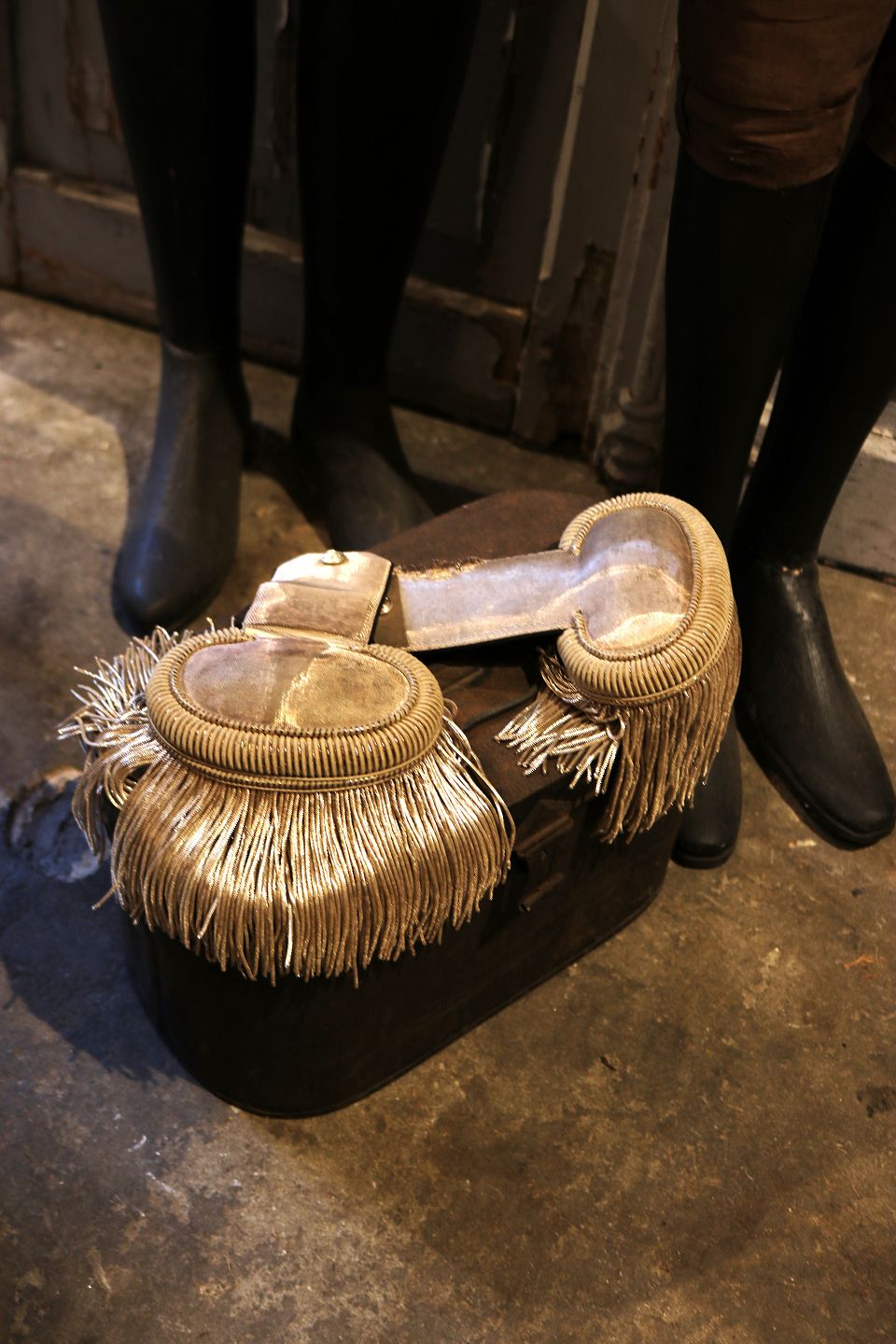 Et par fransk 1800 tals officer Epauletter i sølv med frynser i original metalboks med en fin gammel patina. Boks mål : H: 18cm. B:30cm.