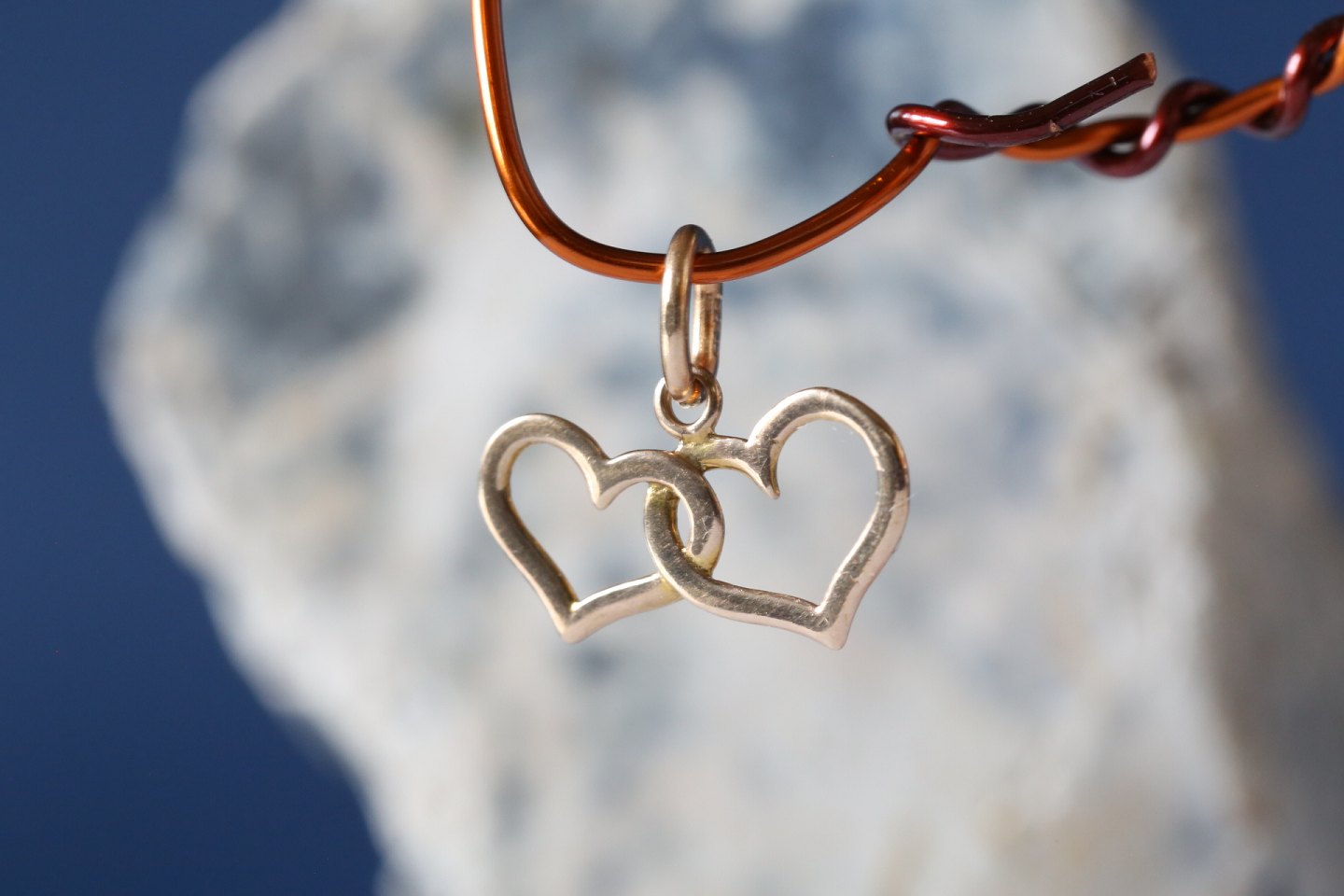 Double heart as pendant for necklace, 14 carat gold, stamped 585.