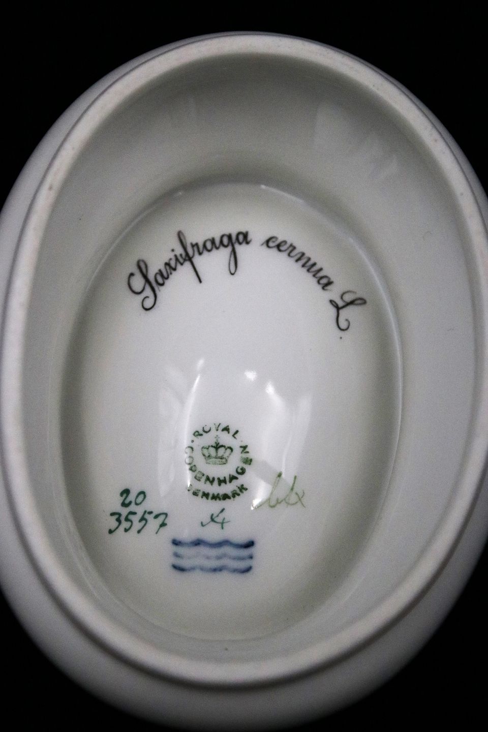 Royal Copenhagen, oval Flora Danica salt bowl.