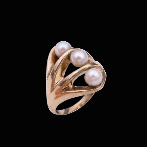Just Andersen. Ring i 14k guld med perler.