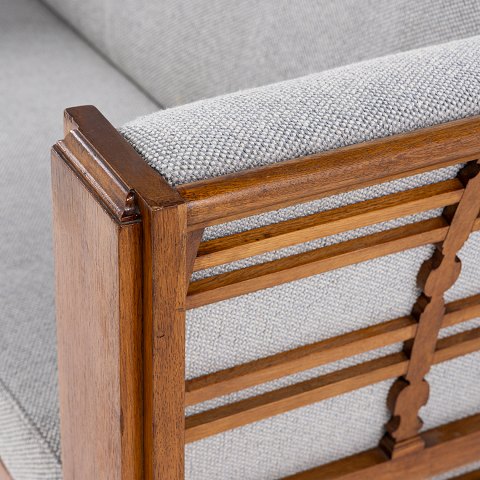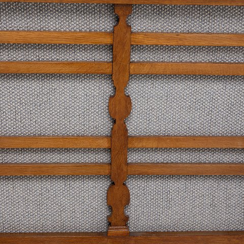 Nybetrukket sofa i Safire-tekstil (farve 008) med stel i patineret eg.