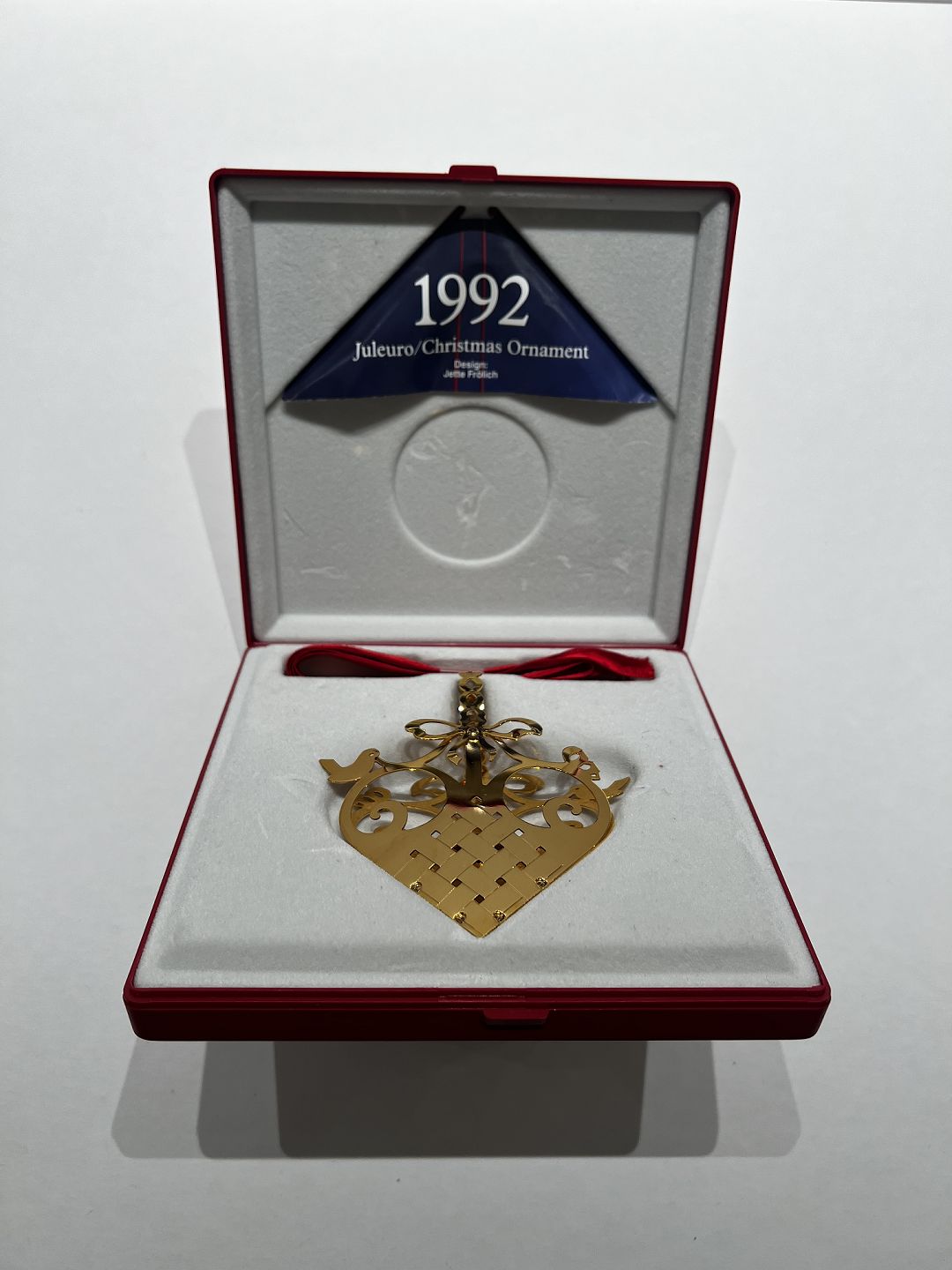 Georg Jensens juleuro fra 1992 har titlen "Spurveskjul" og er et smukt stykke designet af Jette Frölich. Uret er udført i forgyldt messing og måler 9 cm i højden.