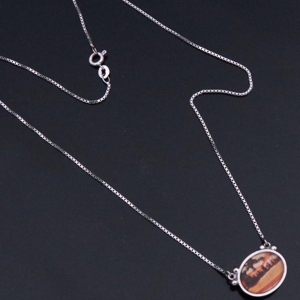 Jørgen Peter Vang. 14k White Gold Pendant with Landscape Agate.