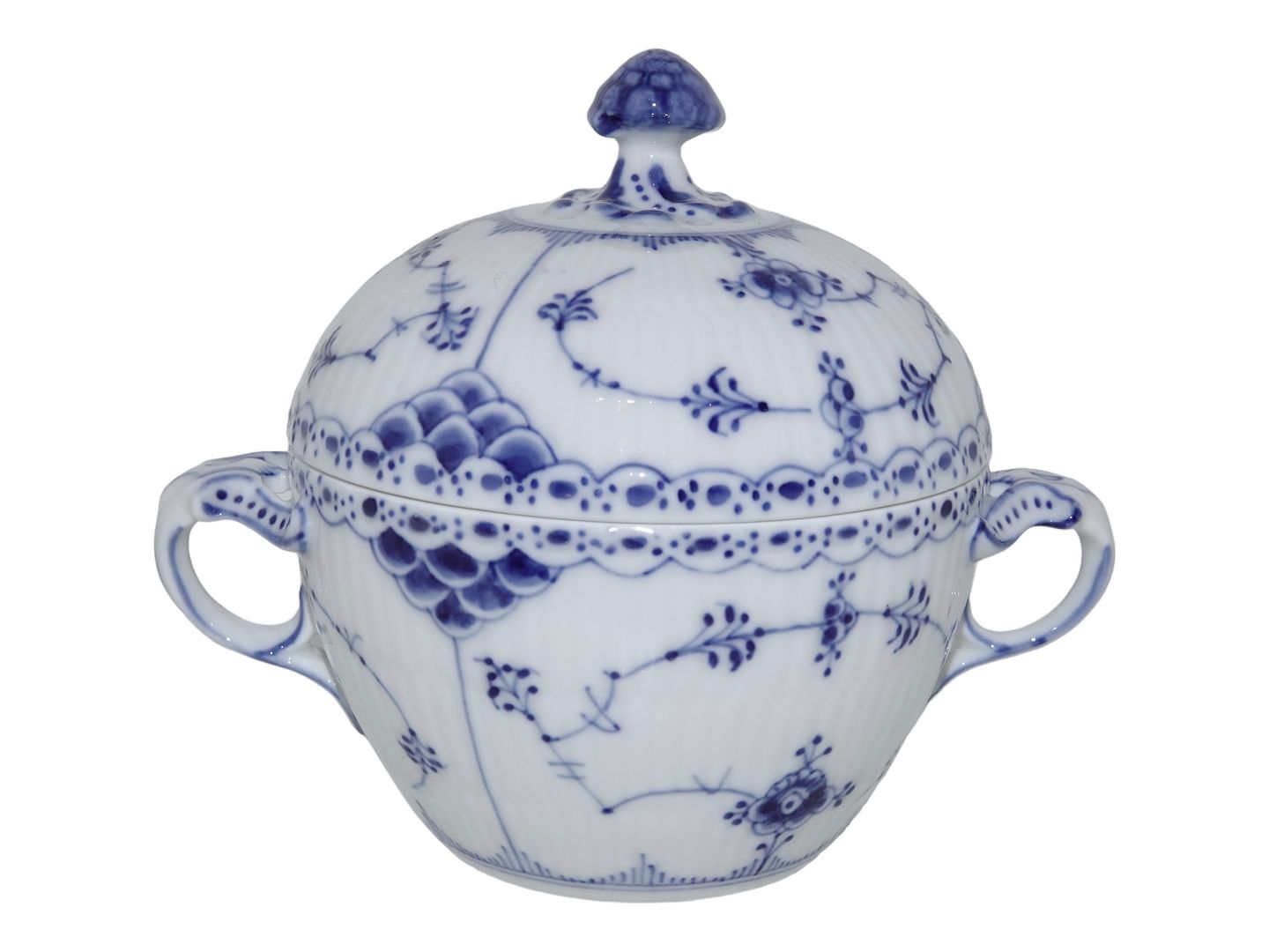 Royal Copenhagen Blue Fluted Half Lace, large lidded sugar bowl.