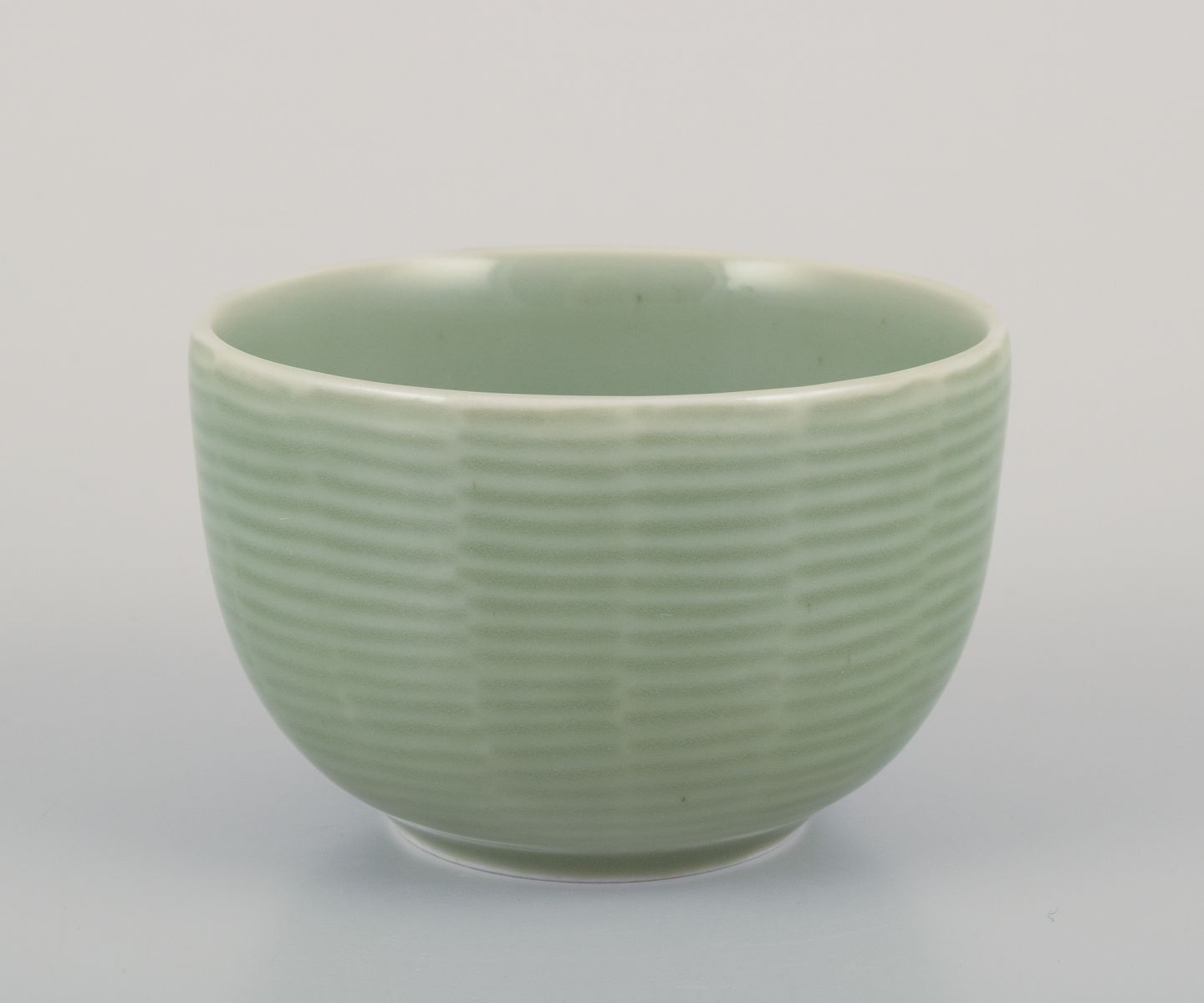 Axel Salto (1889-1961) for Royal Copenhagen. Ceramic bowl with ribbed decoration. Celadon glaze.