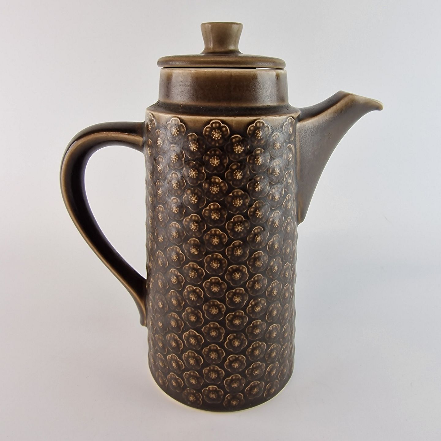 Stel i brun stentøj med blomster motiver