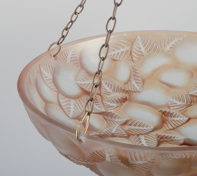 René Lalique "Lausanne" Ceiling lamp/pendant lamp in clear and smoked art glass.