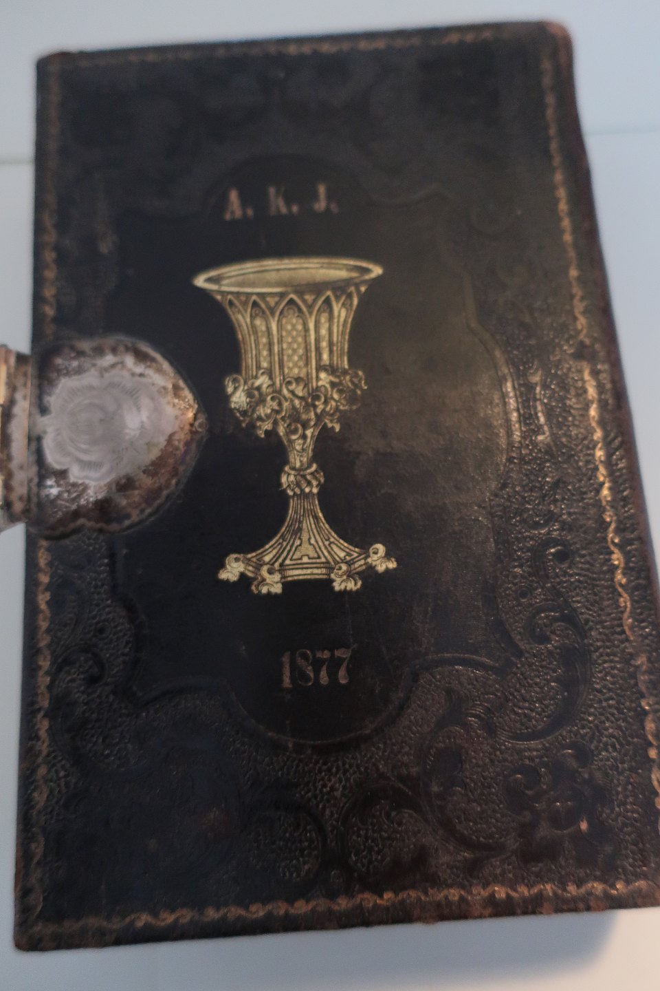 Skind med sølvlukke - smukt dekoreret med rosen motiv