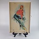 Grafisk tryk af en rødhåret havfrue med ben. Fra 1940'erne