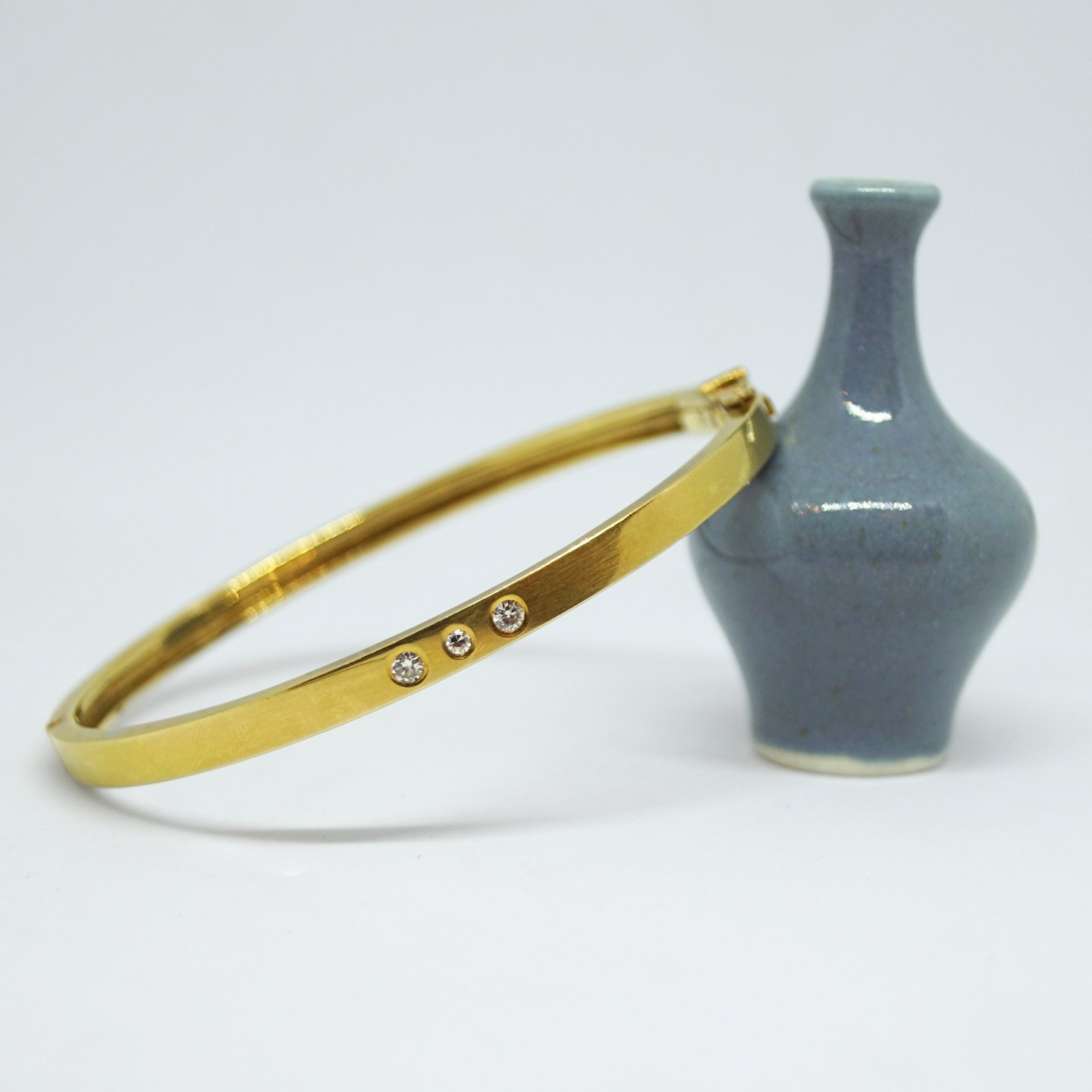 Oval bangle in 18k gold, set with three diamonds, with a total of approx. 0.23 ct.