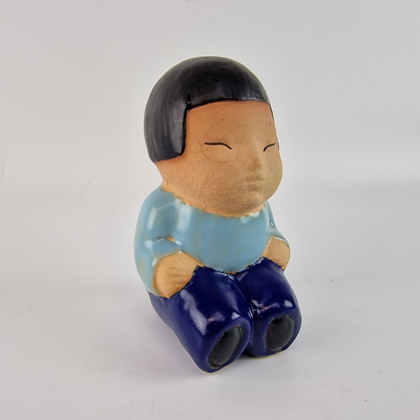 Keramikfigur af en hånddekoreret siddende kinesisk pige med navnet Mei.