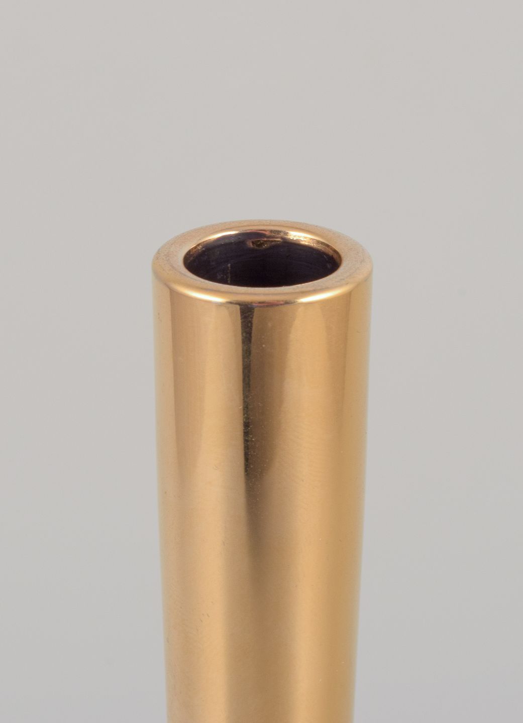 Tall and narrow necked brass vase coated with 24-carat gold.