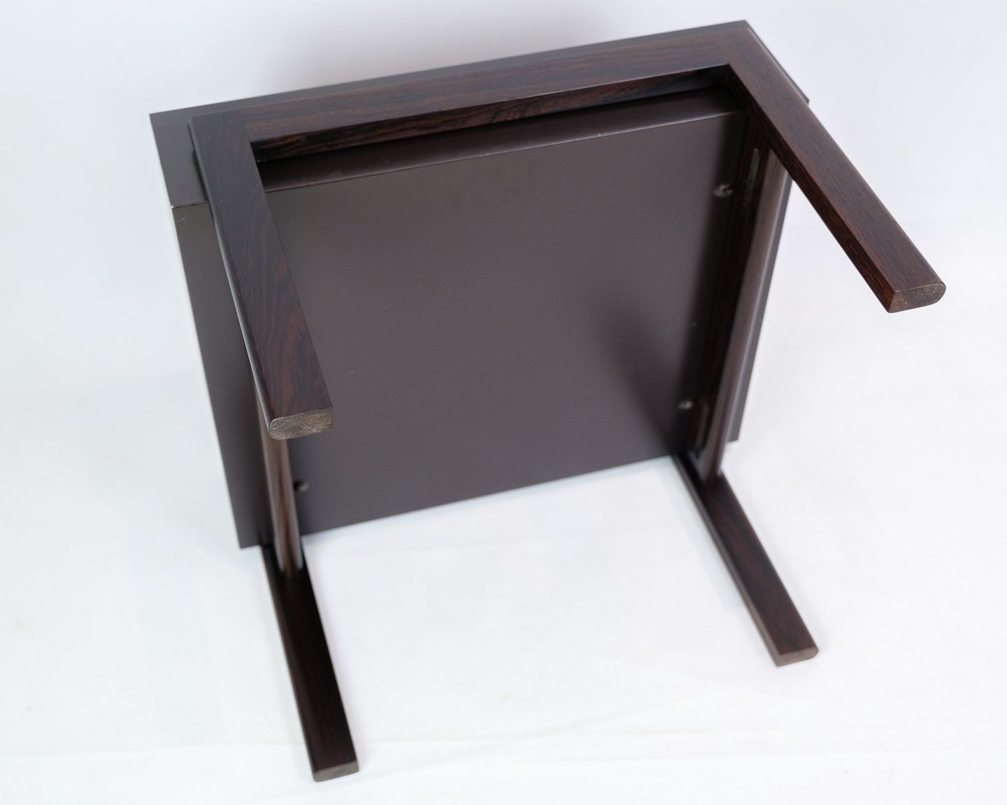 Accentuate your interior style with this elegant rosewood flower basin, fitted with a metal basin and created around the 1960s. This mid-century piece of furniture is not just a practical flower container; it is also an expression of aesthetic sophistication and timeless elegance.