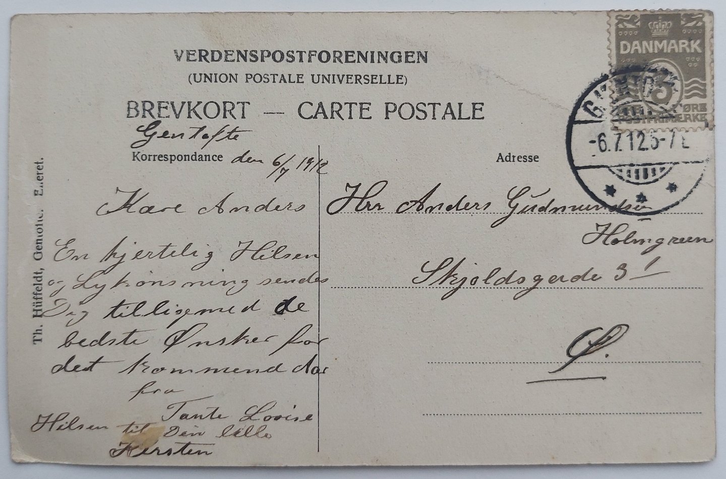 Postkort: Kig imod Gentofte fra Kirketårnet. Annulleret GENTOFTE i 1912. Lidt brugsspor på forsiden. Bl.a. lille hvid plet i højre siden (skrab i overfladen)