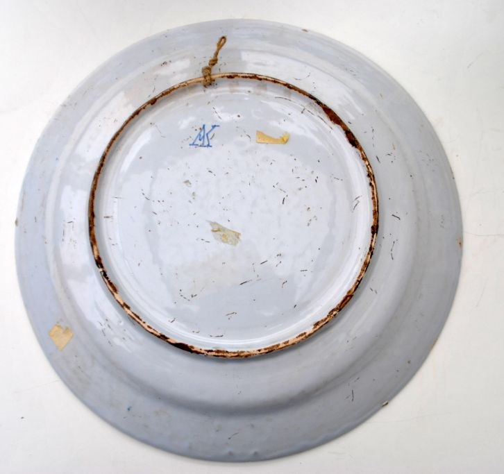 Stort Delft fad, fajance, 1650 - 1700, polykrom dekoreret, Holland
