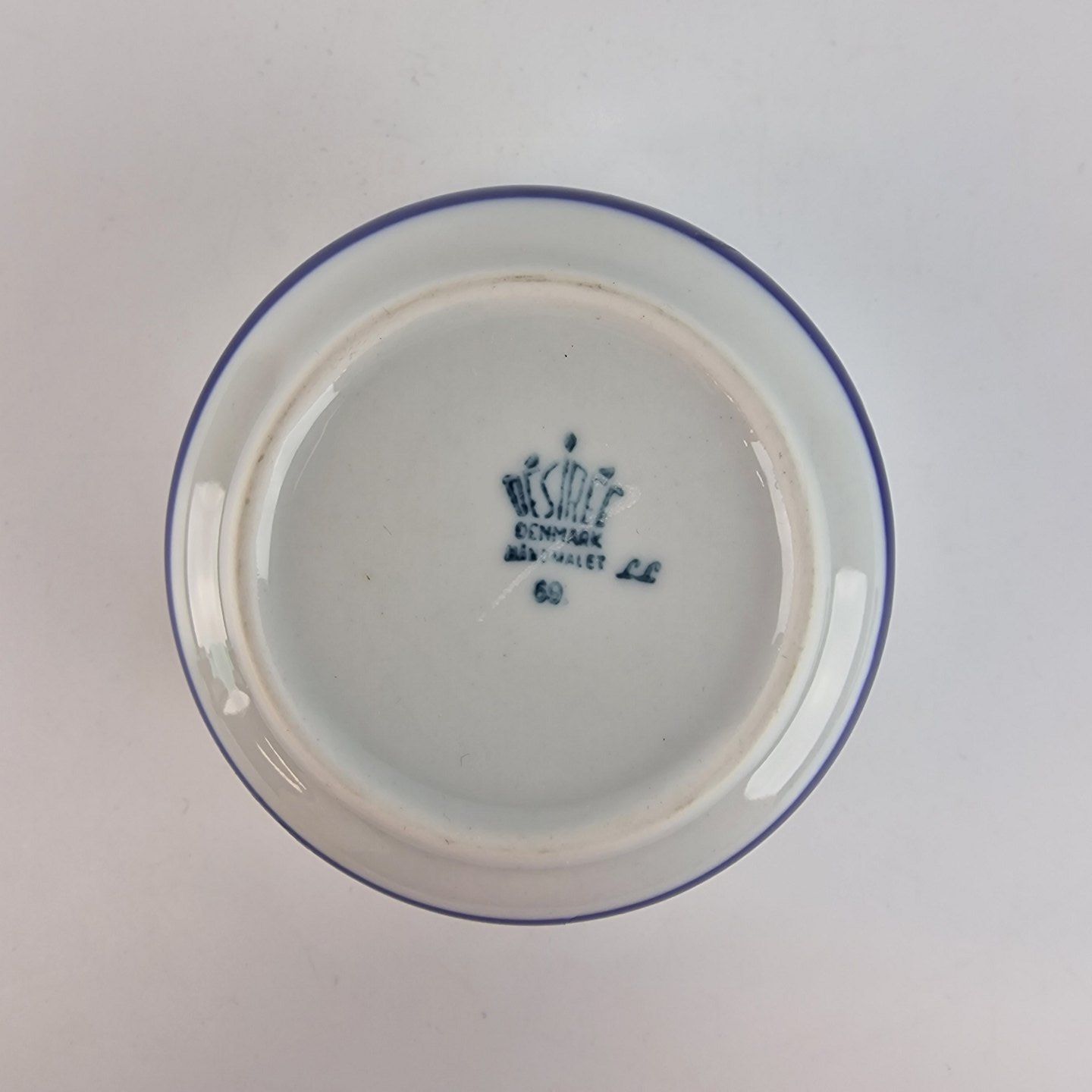 Springtime er af porcelæn, som er glaseret hvidt, malet med blå striber og abstrakt mønster i en lys grøn og blå farve.