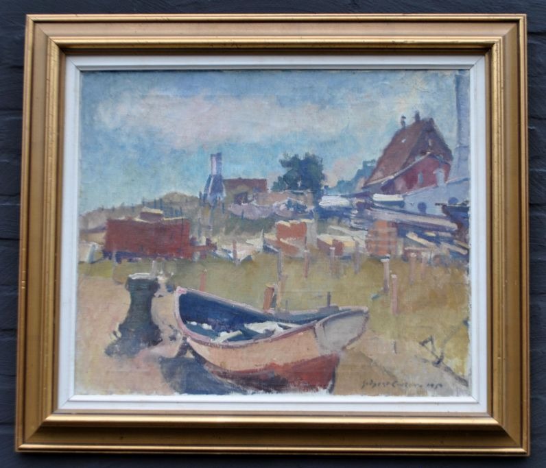 Godycki-Cwirko, Dmitri (1908 - 1988) Denmark/Latvia: Harbor scene from Bornholm. Oil on canvas. Signed: Godycki Cwirko 1950. 50.5 x 60.5 cm. Framed: 67 x 77 cm.