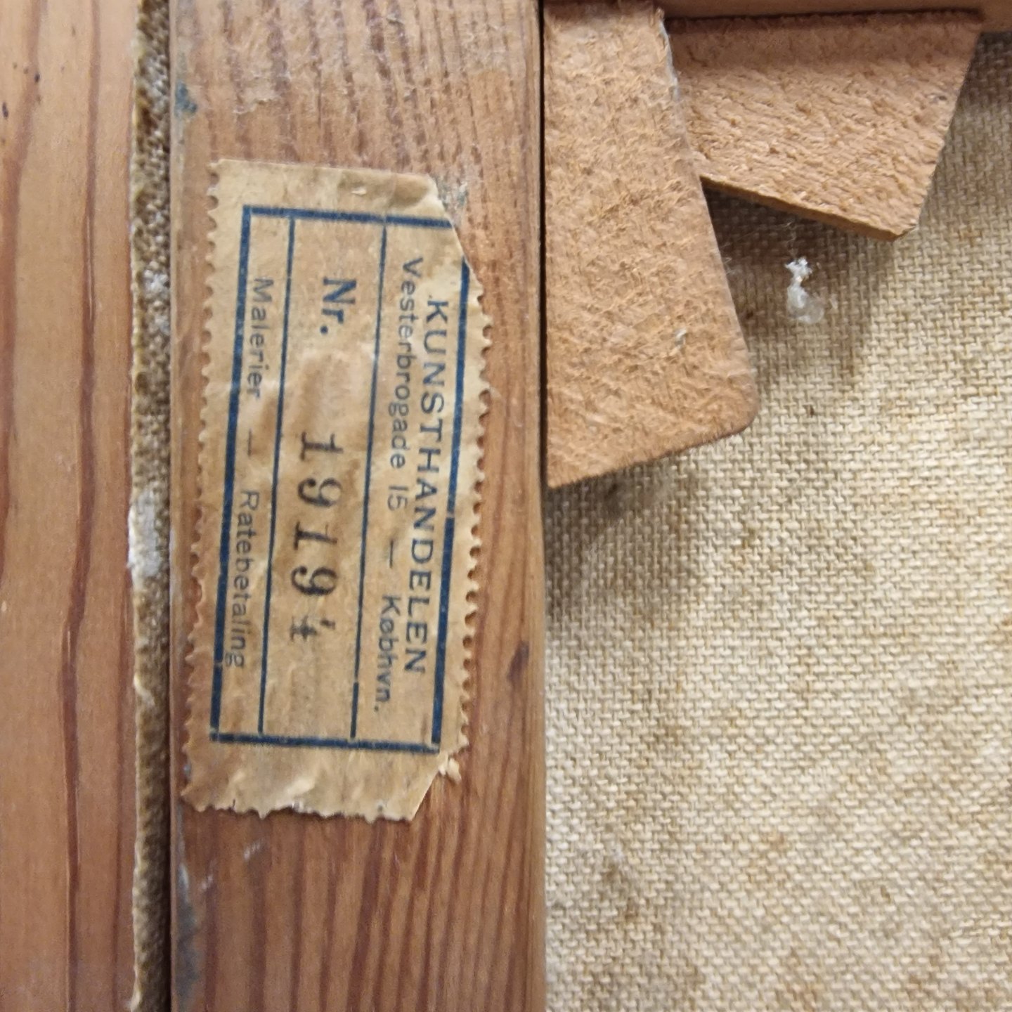 Oliemaling på lærred. Motivet er Skoleskibet Danmark med kurs mod rundingen ved Kronborg