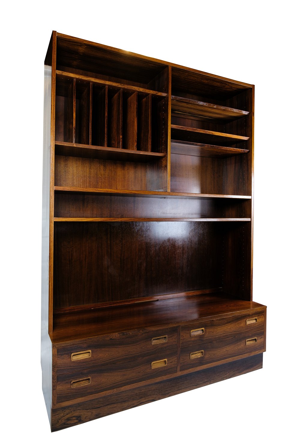 This bookcase is an elegant example of Danish design from the 1960s, produced by Hundevad Møbelfabrik. Crafted from rosewood, this bookcase exudes a timeless beauty and simplicity that fits perfectly with any decor.