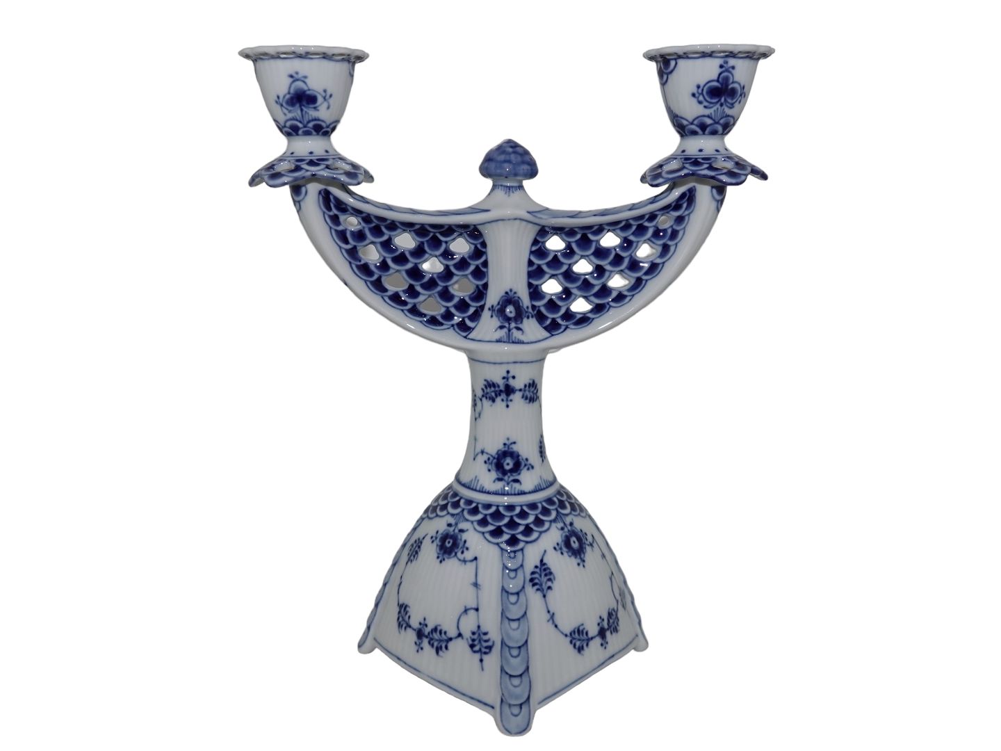 Royal Copenhagen Blue Fluted Full Lace, two-armed candlelight holder.