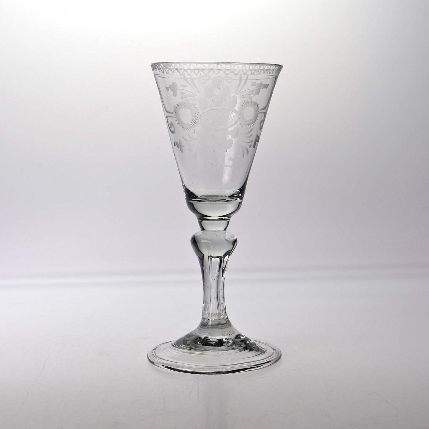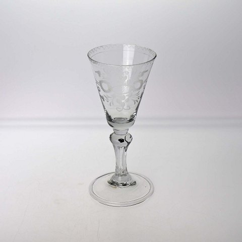 Antik schleisk Dresden/Laustein hedvinsglas med slebet mønster dateret til 1750?