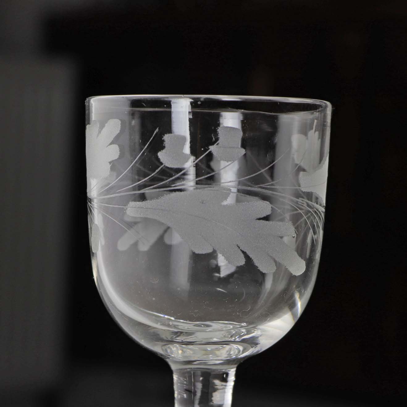 Antik hedvinsglas med egeløv slibning