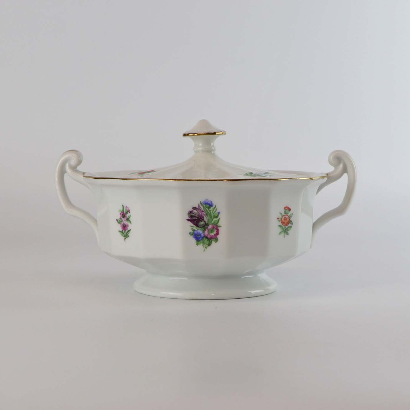 Kongelig sukkerskål i porcelæn med låg fra stellet Strøblomst nr. 482/8563