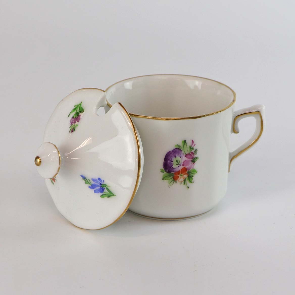 Kongelig sennepskop i porcelæn med låg fra stellet Strøblomst nr. 482/8586