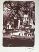 Litografi af Johannes E. Møller 2001 - Stykgodsskibet ankommer til havn.