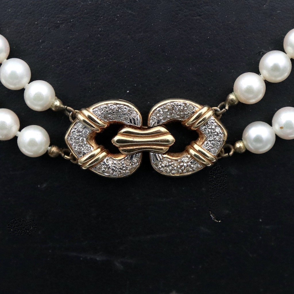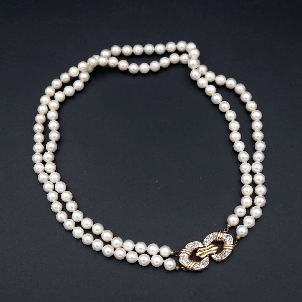 Two-Strand Pearl Necklace with 18k Gold Diamond lock.
