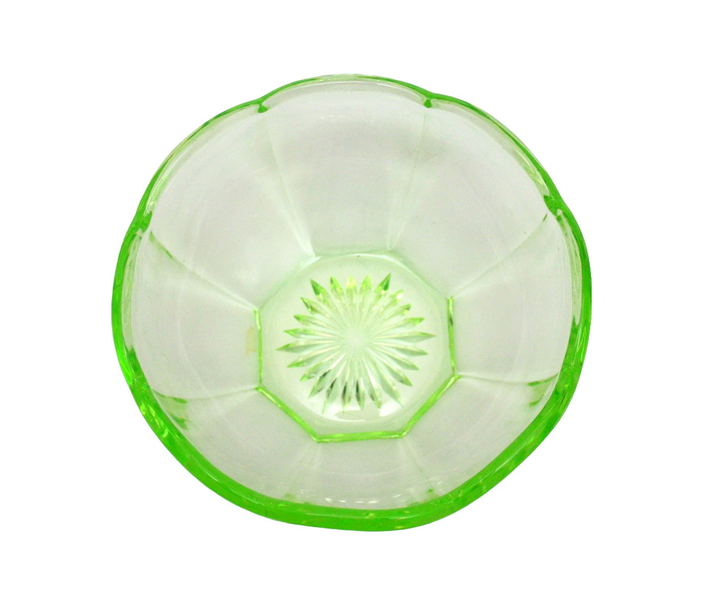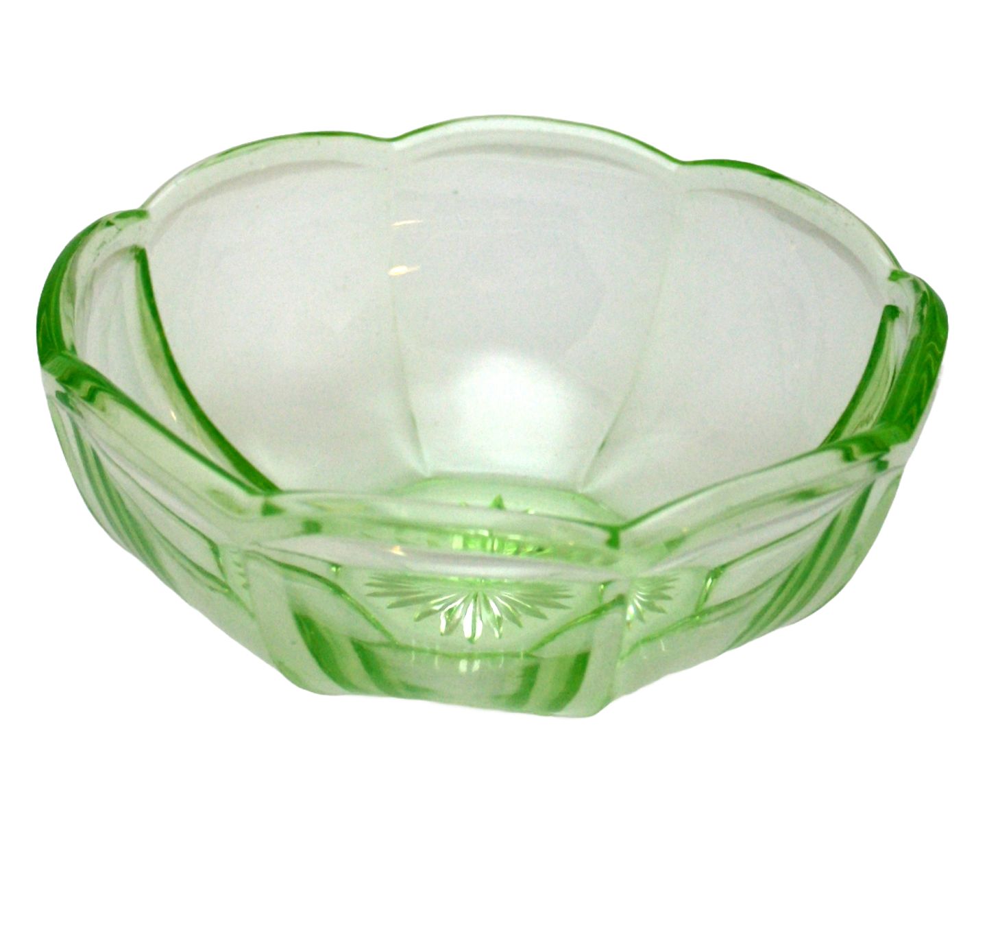 Text available in Danish: Lille skål urangrøn, Chippendale, Fyens Glasværk