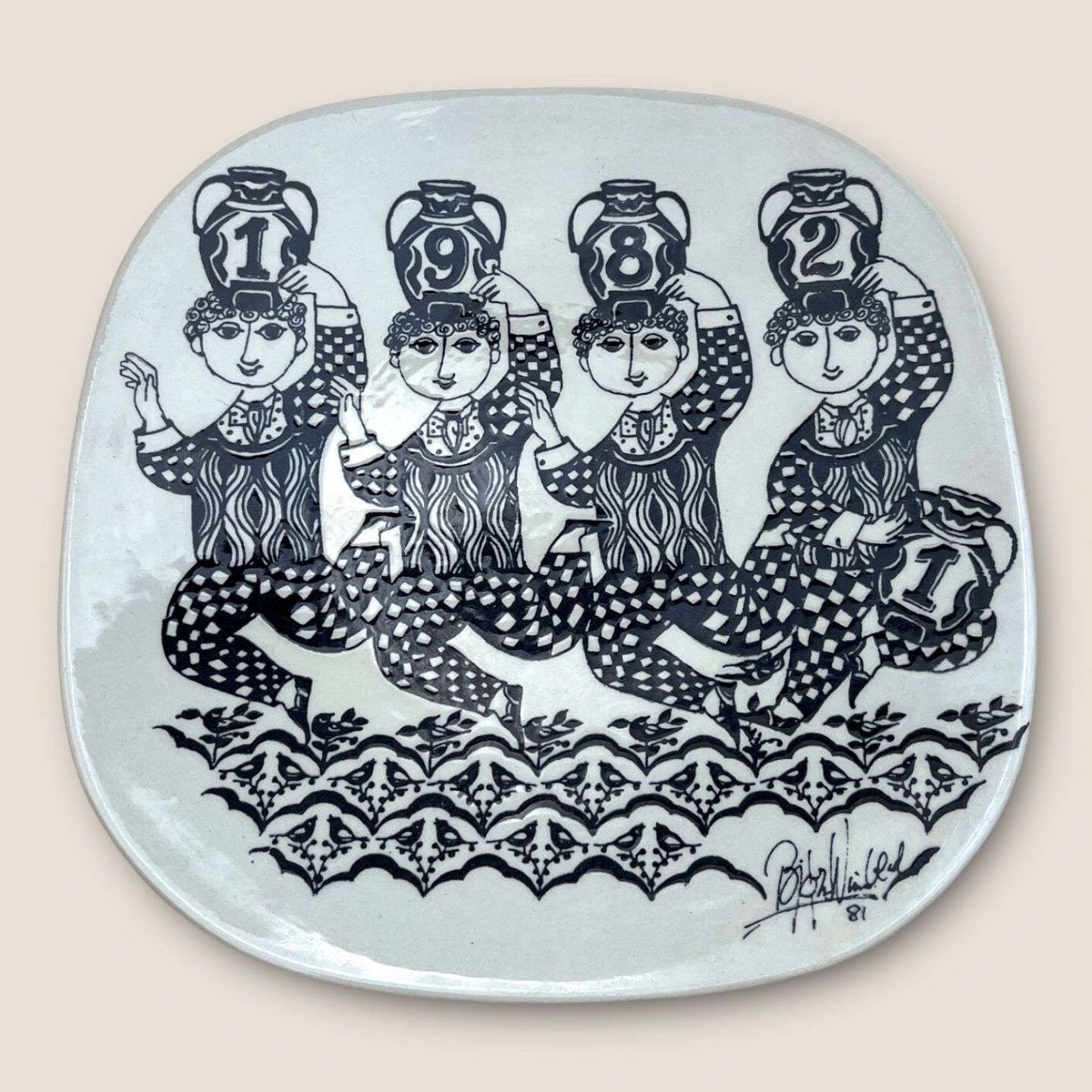 Bjørn Wiinblad, Nymølle, Imerco, New Year's Plate, 1981 - 1982, Danserne, 19/19cm *Nice condition*