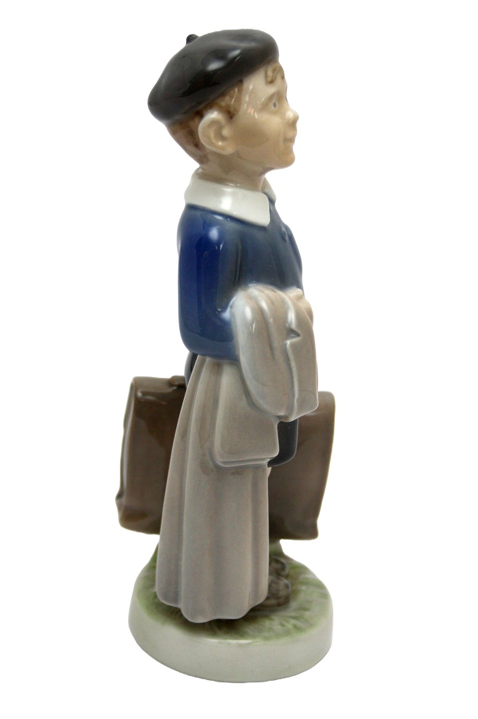 Royal Copenhagen, Dreng med skoletaske, juni en del af månedsserien. Designet af Hans Henrik Hansen. Nr. 4528. Højde 17 cm. I. sortering. Pris: 750 kr.