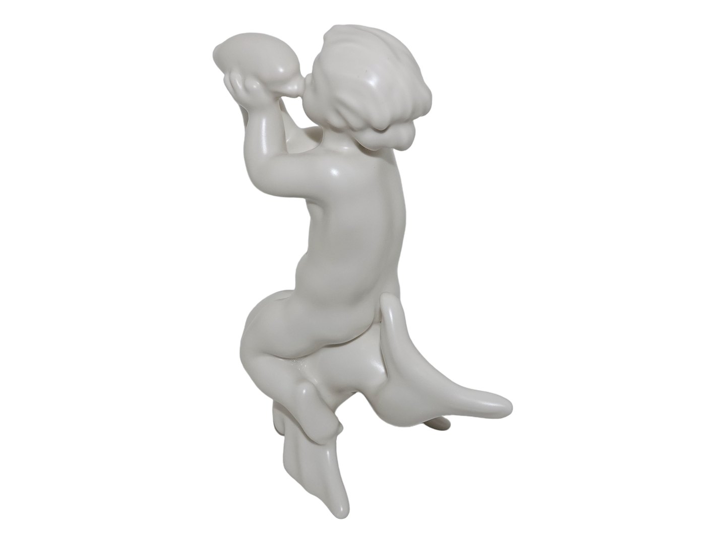 Bing & Grøndahl hvid figur, dreng med delfin udført med mat glasur.