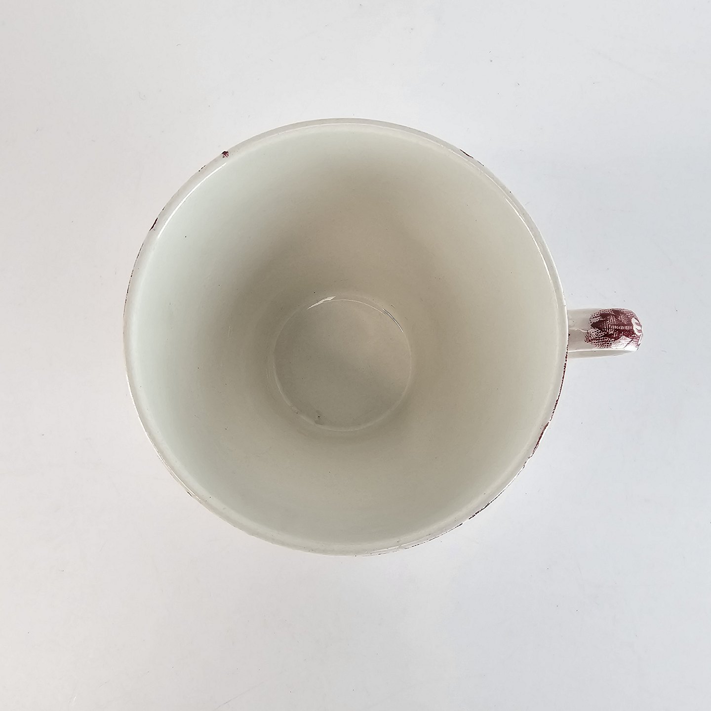 Kaffekop med underkop fra det engelske stel Rød Paris (Enoch wood's, English scenery)