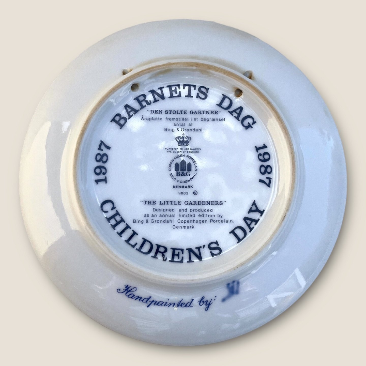 Bing & Grøndahl, Children's day plate, 1987, The little gardener, 13cm in diameter, 1st sorting, Design Sven Vestergaard *Nice condition*