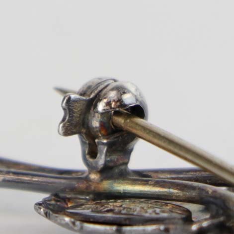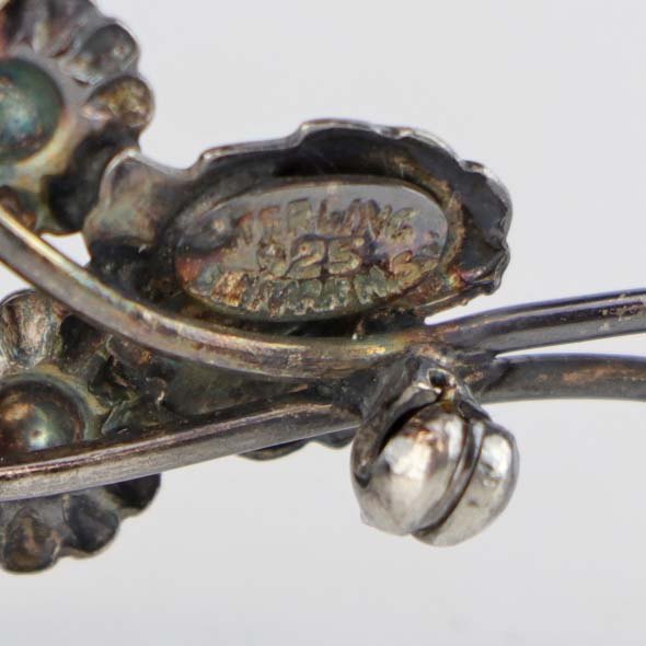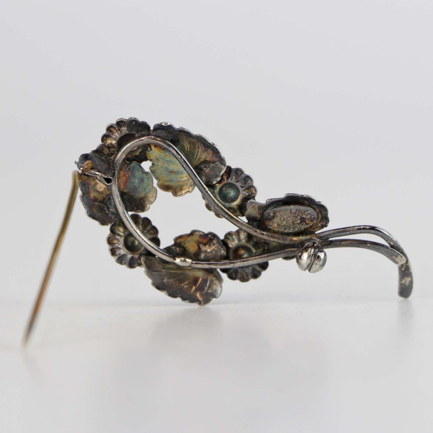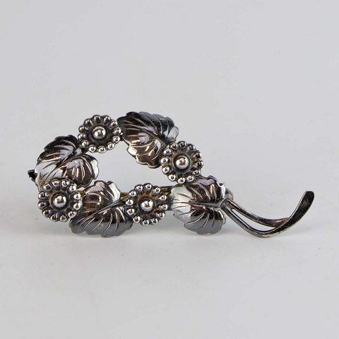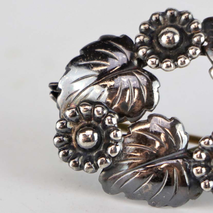 Broche i sterling sølv med motiv af en krans af blomster og blade