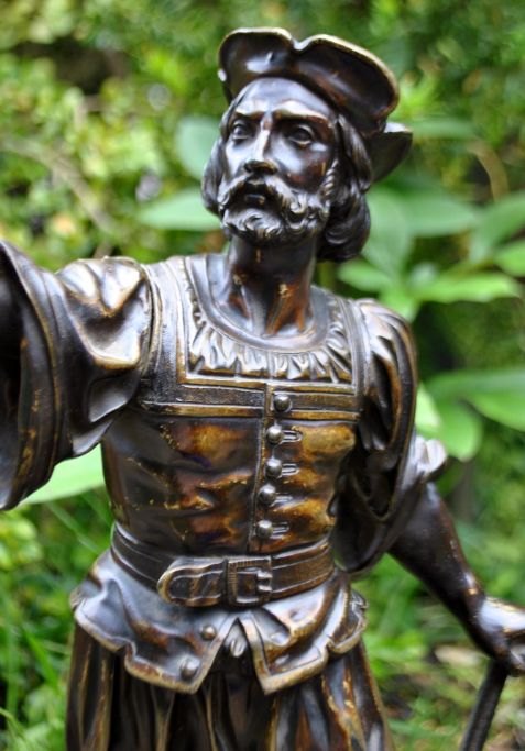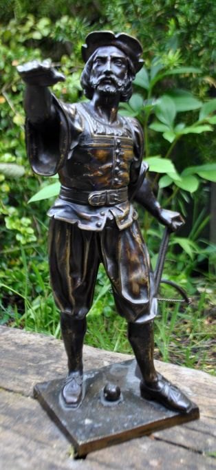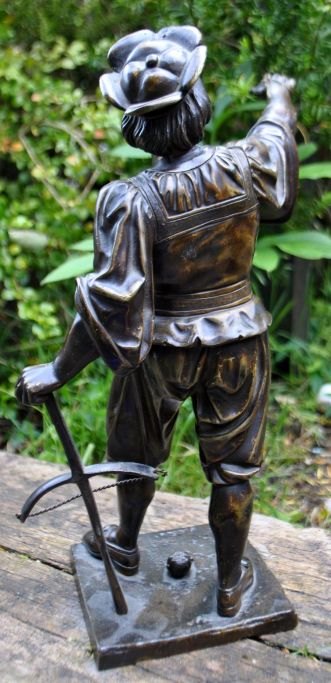 Unknown artist (19th century), Hunter with crossbow. Sculpture in patinated bronze. H: 33 cm. W: 25 cm. Perfect condition!