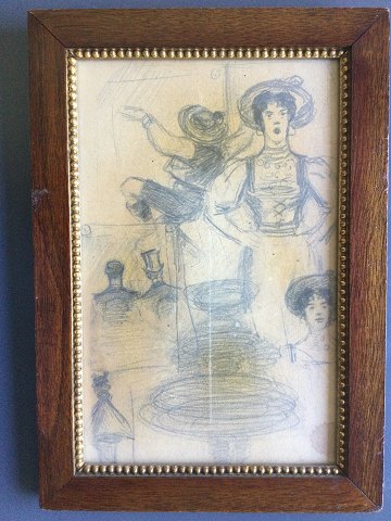 Tegning af Eigil Petersen - Mænd og kvinder i festligt lag.