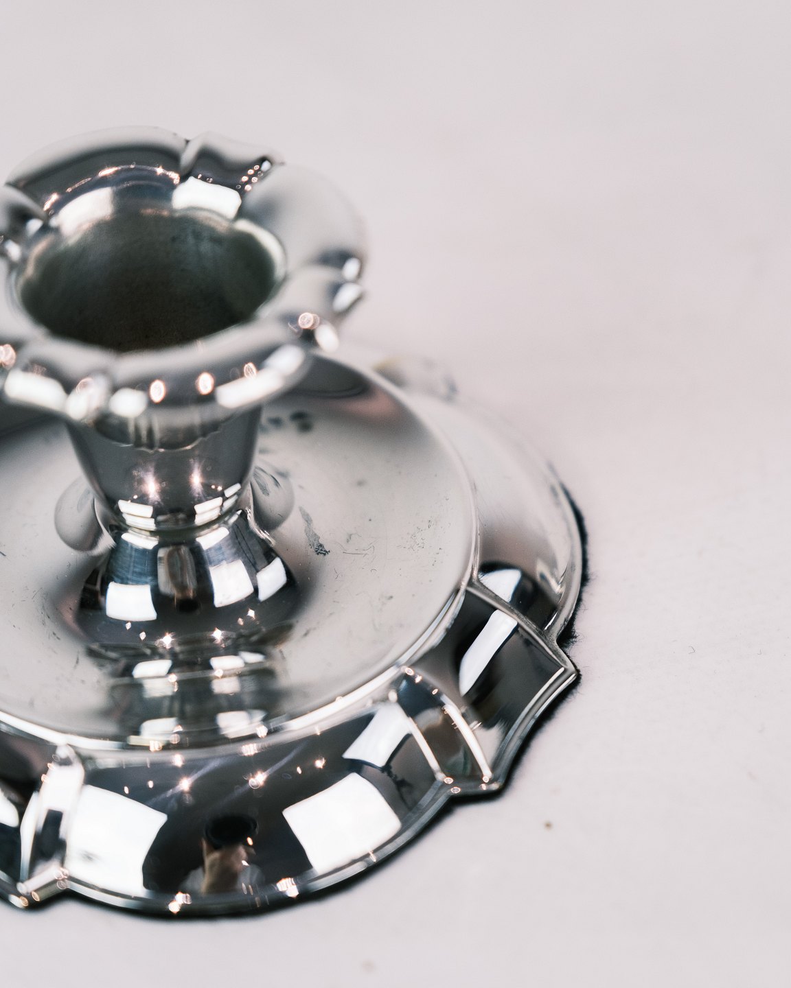 Sæt af 2 lysestager i 830 sterling sølv fra 1930'erne. Fremstillet i solidt sølv, der holder sin glans og kvalitet over tid. Et klassisk eksempel på håndværk fra perioden.