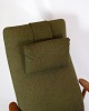 Set of 2 armchairs with ottoman in teak and green fabric, designed by Alf Svensson and produced by Fritz Hansen in the 1960s.