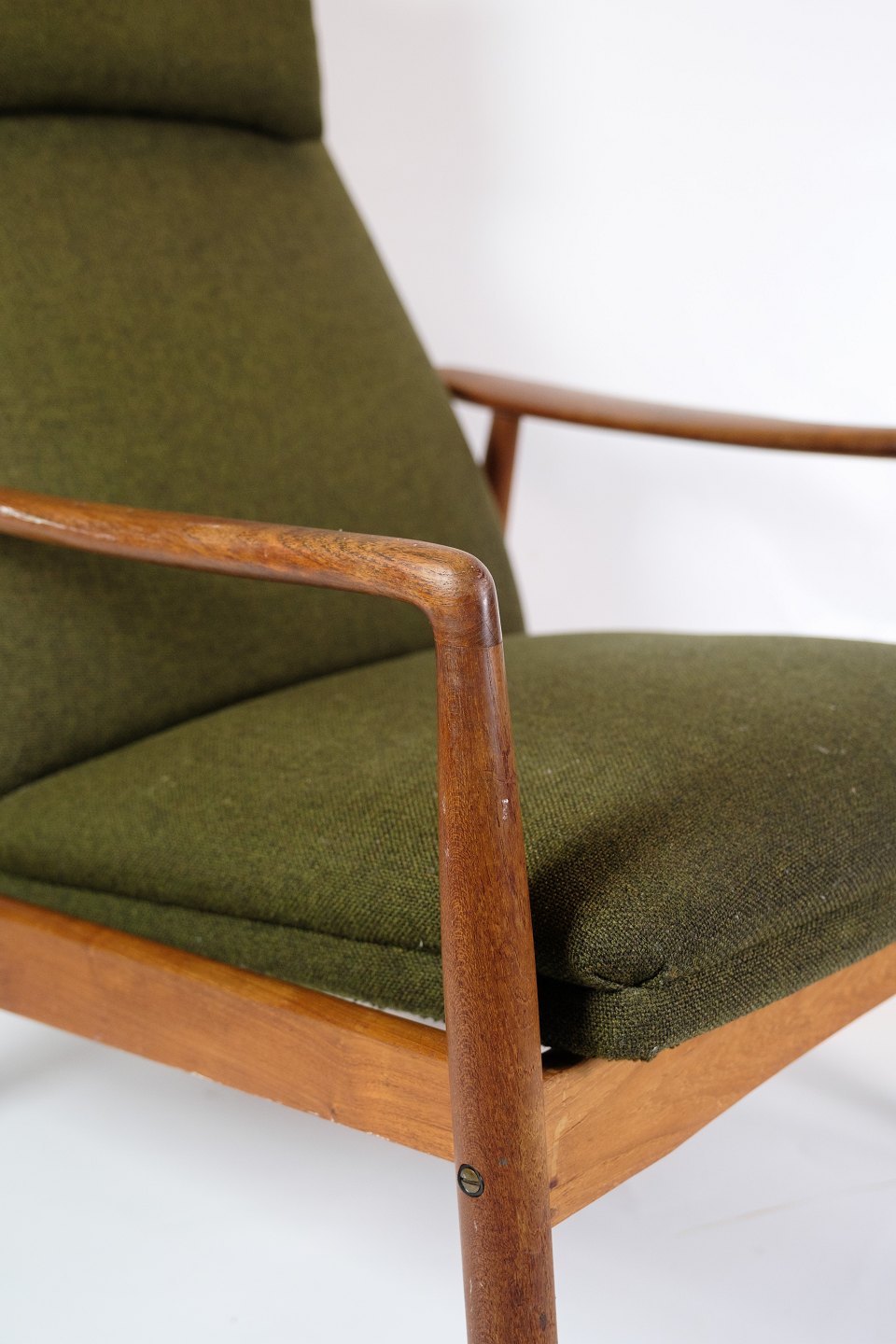 Set Of 2 Armchairs With Stool - Teak - Green Fabric - Alf Svensson - Fritz Hansen - 1960s