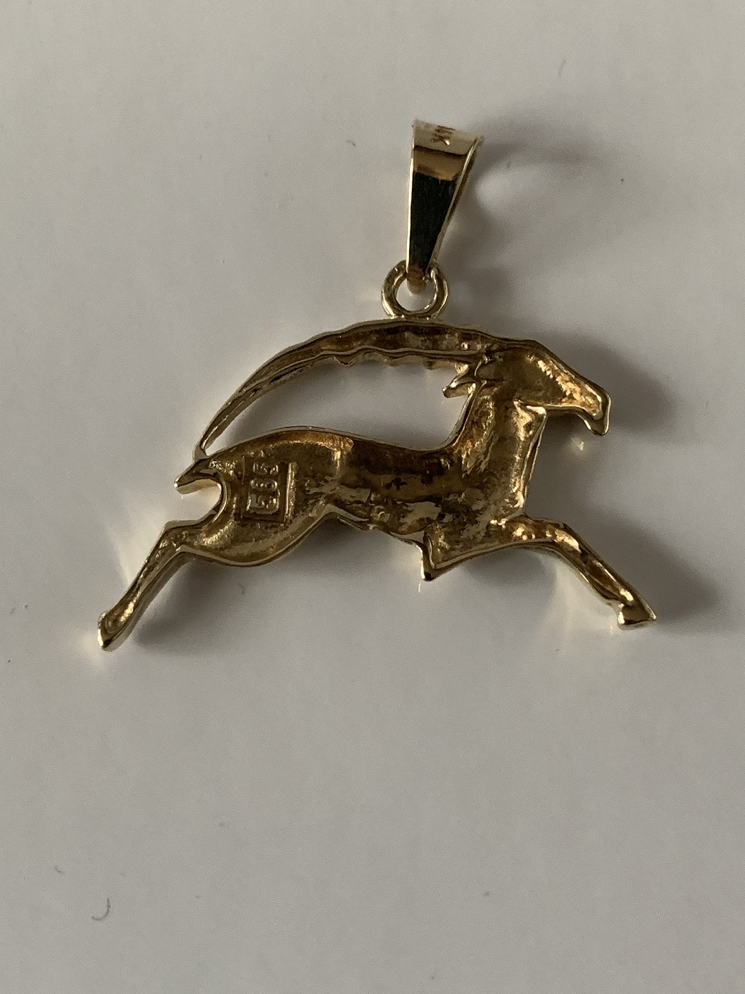 Vedhæng i 14 karat guld, lavet som stenbuk. Stemplet 585.