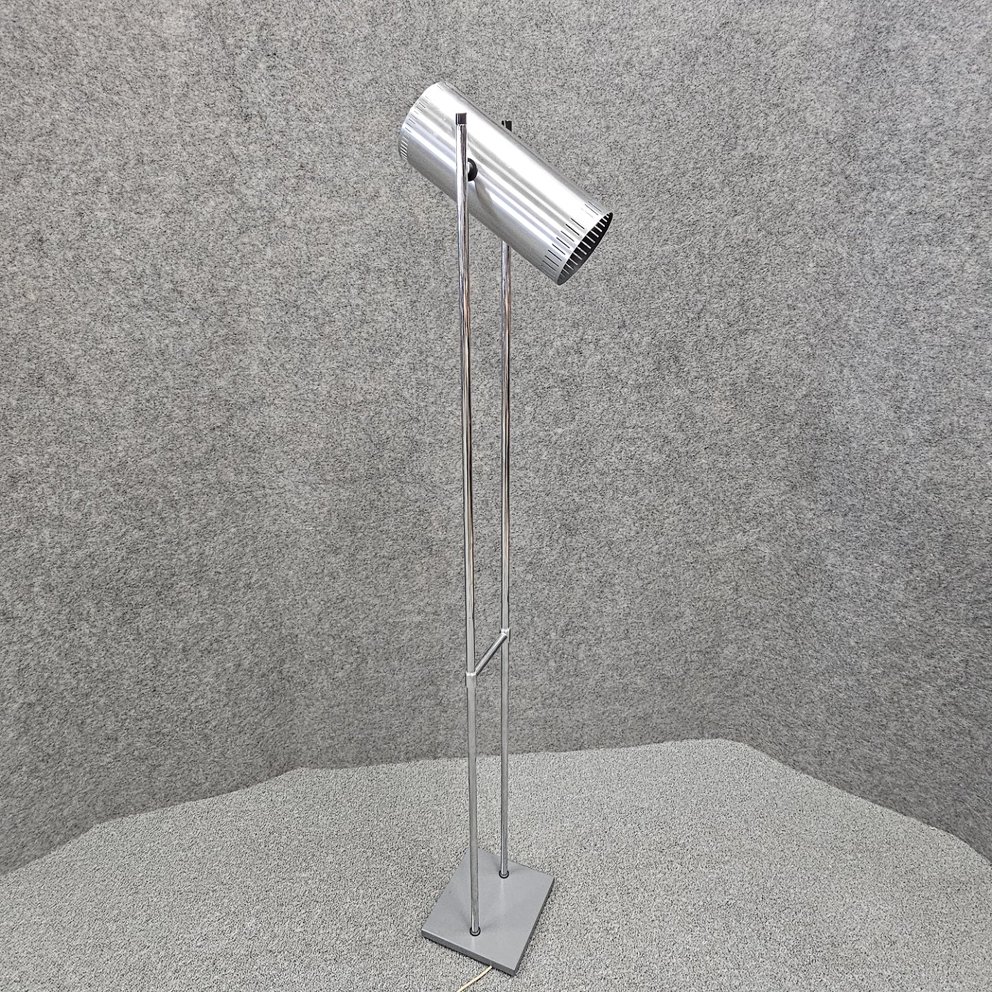 Standerlampe af børstet aluminium, fra serien Trombone. Designet i 1960'erne